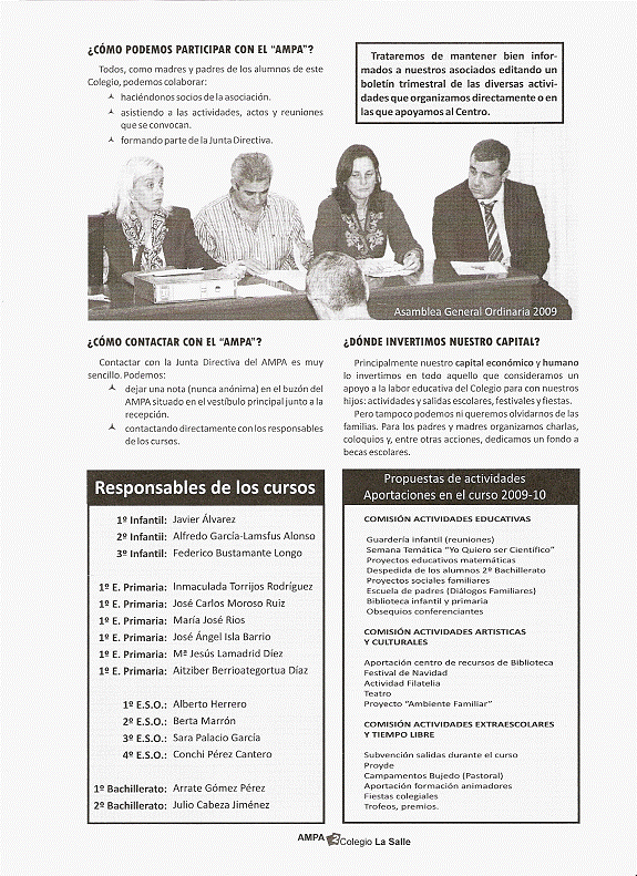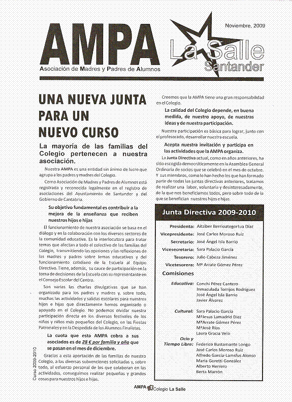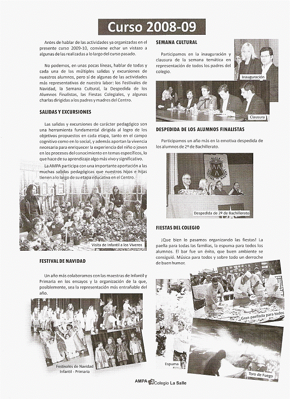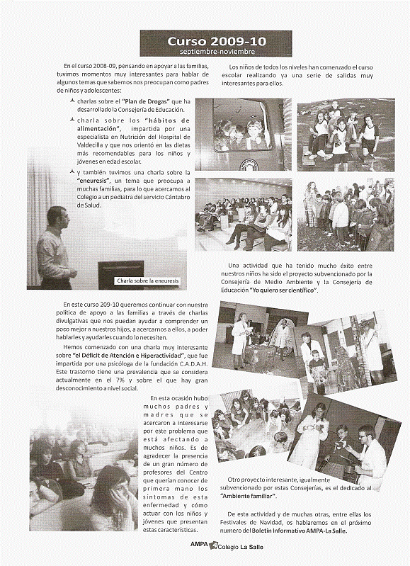 Boletín informativo trimestral, elaborado por el AMPA del Colegio La Salle para informar a los miembros de su ampa de todas las actividades que realiza su asociación, todo ello acompañado de fotografías.